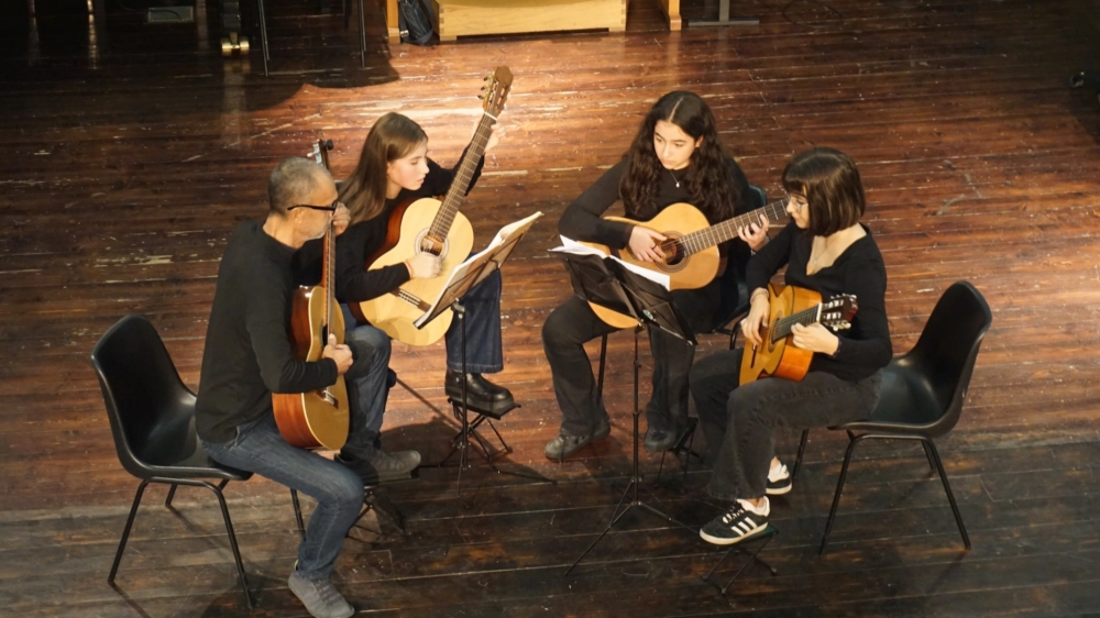 Gli alunni della nostra scuola, preparati dai rispettivi docenti di strumento, si sono esibiti in diverse formazioni da camera — ensemble di violini e violoncelli, ensemble di chitarre, ensemble di saxofoni — alternandosi sul palco con professionalità e grande entusiasmo.
